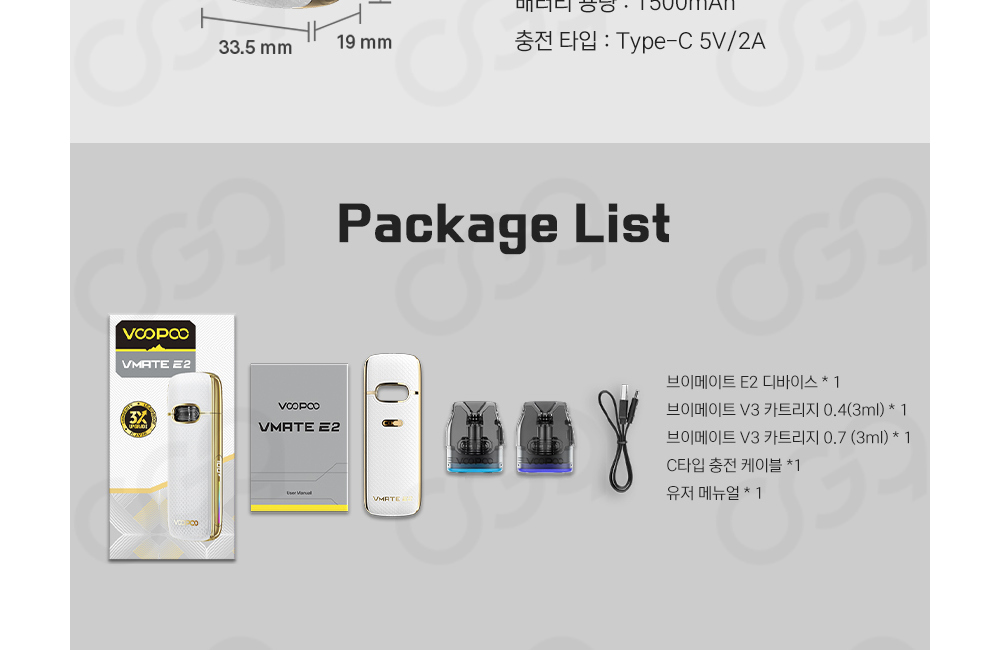 브이메이트 E 킷과 비교하였을 때, 디스플레이 부분으로 인해 충격에 조금 더 약할 수 있습니다.